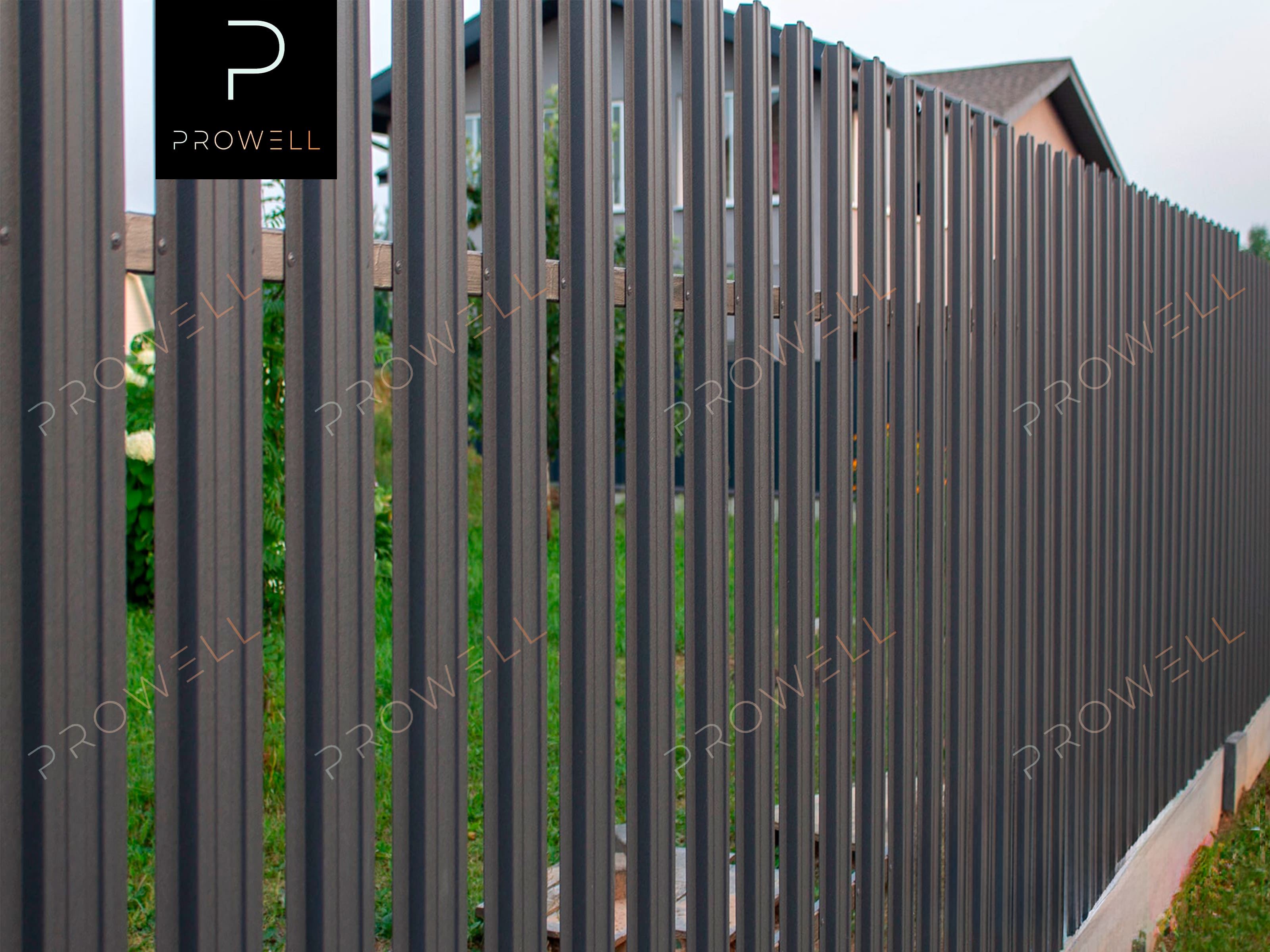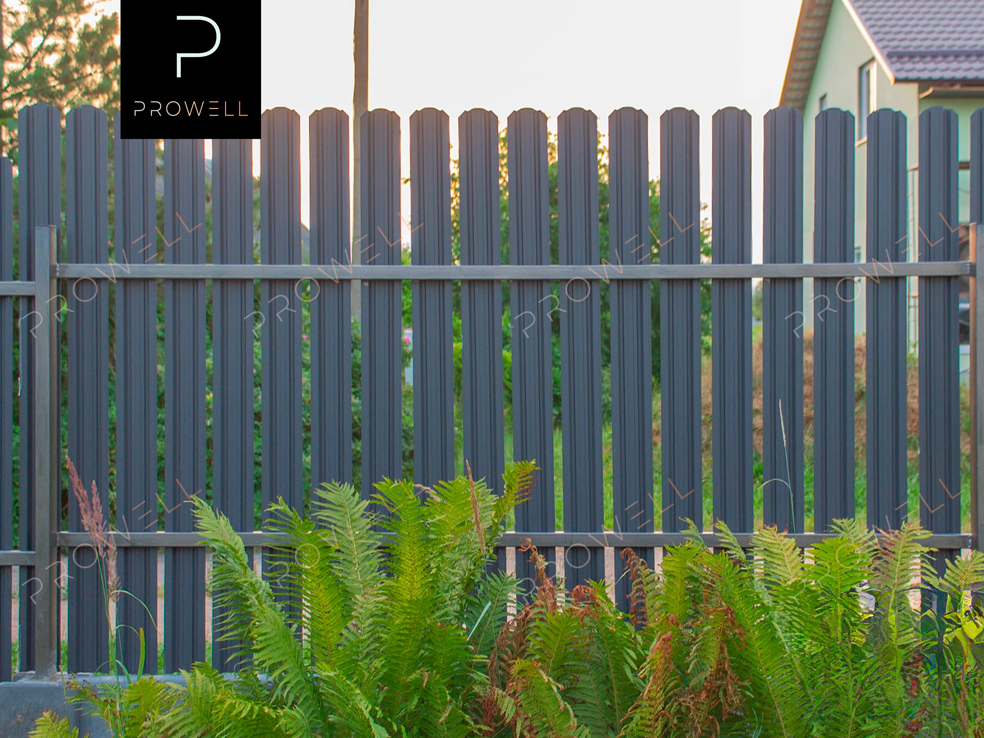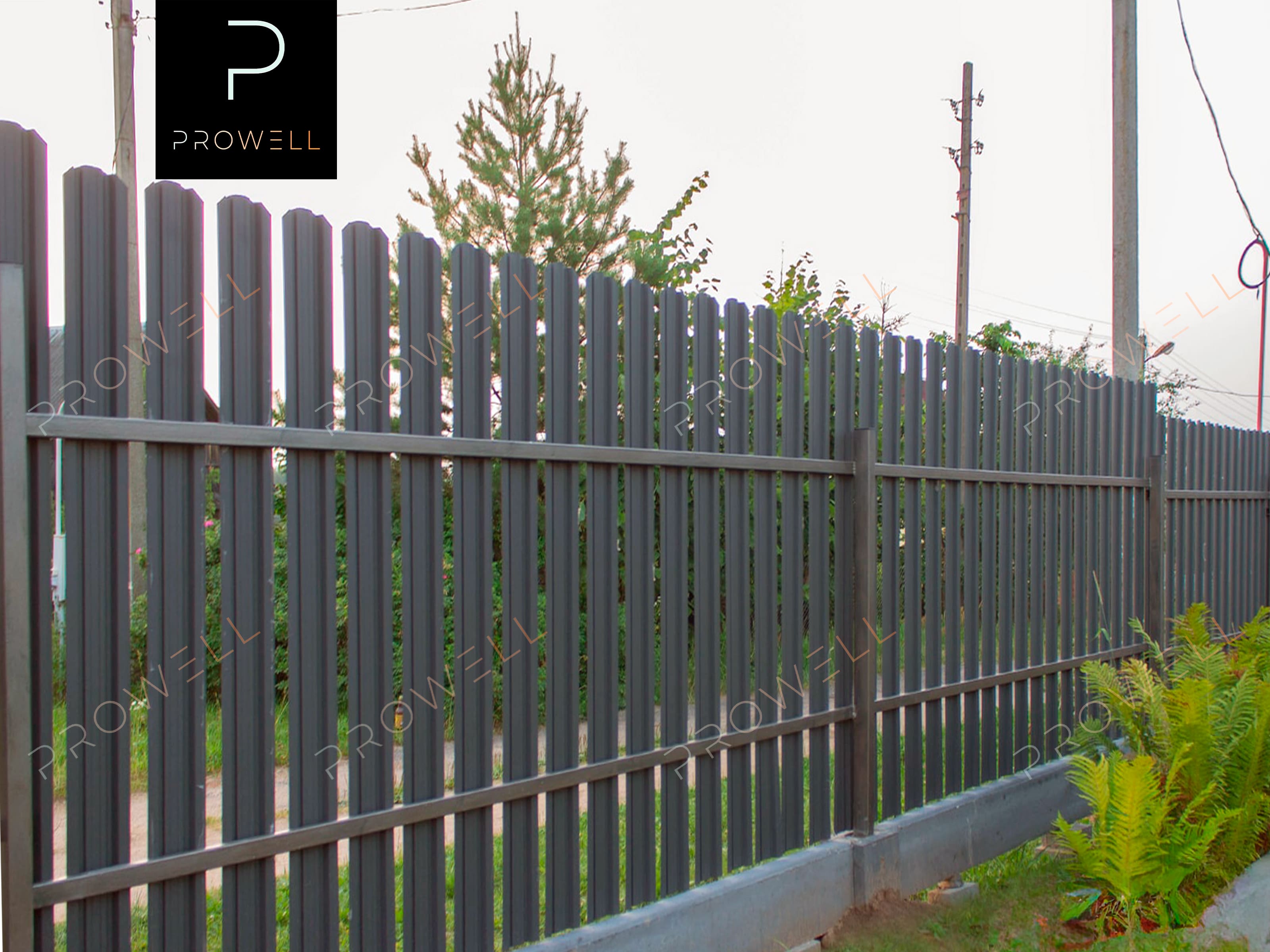 Монтаж забора из металлического штакетника "Трапеция (118мм)" RAl 7024 (серый графит) МАТ